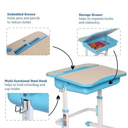 As one of Scholar Series, this desk & chair suit provides plastic box to meet the larger storage demand. Slope desktop with 0° or 6.5° tiltable angle satisfies the need of writing and reading. Height adjustment design enables favorable seating posture for different age stages. Winged backrest eases the pressure of lumbar spine and provides comfortable seating experience.