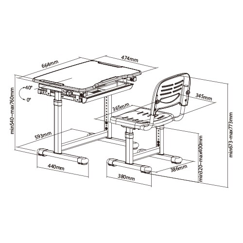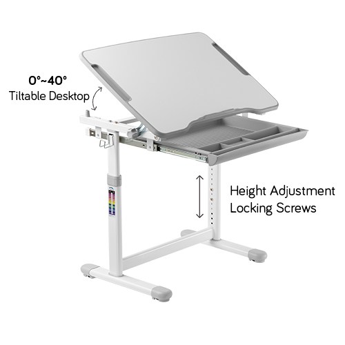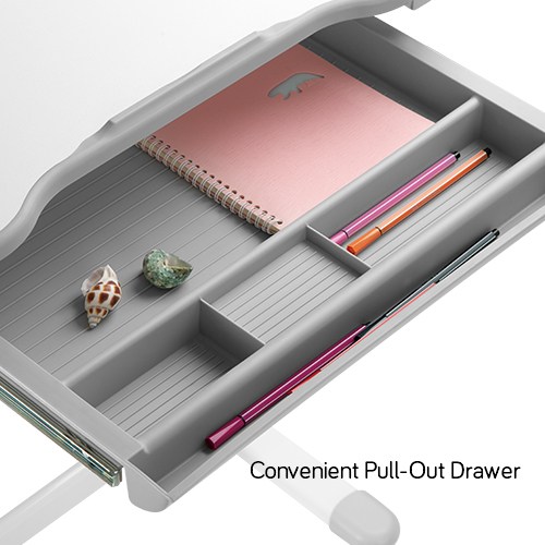 ERGOVIDA’s Elfin Series of height adjustable desk and chair sets continue offer improved design and function that make a child’s work and study time more comfortable and efficient. The B201EDU’s unique locking leg screws provide a stable work platform for young students to read and write. The adjustable desktop is easy to raise or lower with up to a 40° incline using two easy-grip knobs. The anti-pinch design helps prevent possible injuries during adjustments to the desktop. In addition, a convenient pull-out drawer offers ample storage space for pens, pencils, books and more.
