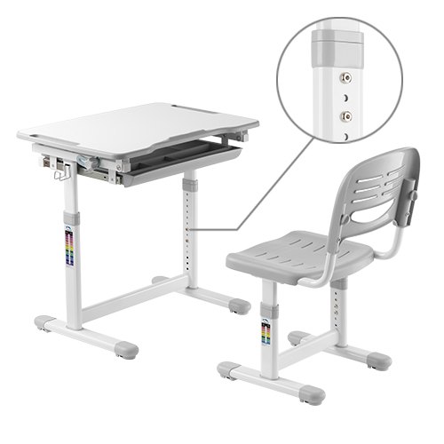 Screw-Locking Height Adjustable Kids Desk and Full-Backrest Chair Set