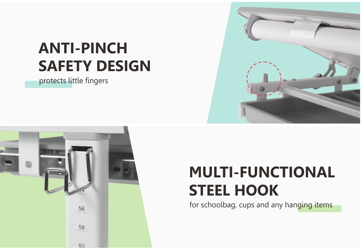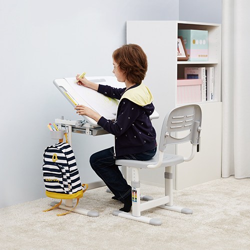 For a healthy growing of your child a correct posture while sitting is important – after all it is in a grow period. B203 is designed to provides a more friendly and comfortable learning environment. The desk and chair can be effortlessly adjusted in height - and enable an optimal adaptation to the current height. The included roll of art paper mounts under the tabletop keeps the paper within easy reach when the kid is drawing and offers a clean work surface when not in use. The desktop can be tilted up to 40° freely for writing, reading and drawing. The compartmented drawer underneath desktop offers lots of space for books and stationery .