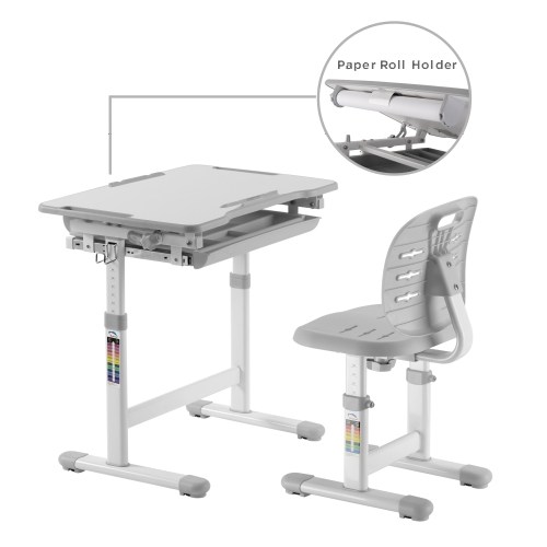 ERGOVIDA’s B203S is designed with the user in mind. The desk offers all the needed features to make a growing child’s room the best place to learn, play, and create! Height-adjustable mechanism growing with kids, tilting desktop with anti-pinch design protecting hands, integrated storage system for compartment, stationeries and to-do list. The included roll of art paper mounts under the tabletop keeps the paper within easy reach when the kid is drawing and offers a clean work surface when not in use. A depth-adjustable backrest and height-adjustable seat combine to provide firm support for the child's back while reducing the chance of tipping. Best of all, the child enjoys increased comfort.