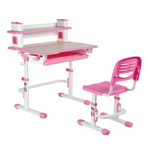 Through the eyes of kids, the world is a magical place full of wonder and inspiration. We bring this perspective to life, providing striking furniture and creative storage solutions to help enhance your kid's environment. This kids study desk & chair set is a great addition to any kid's room, play area, classroom or daycare and makes it easier than ever to encourage creative play and hands-on developmental learning in your kids. Kids will have hours of fun expressing their creative side while learning and enriching their minds. Tiltable desktop provides better angle for writing, reading and drawing. The pulled-out storage drawer with comparted design for helping organize books and stationery to reduce clutter. Height adjustment design lets the desk grow with your child for healthy-promoting purpose.