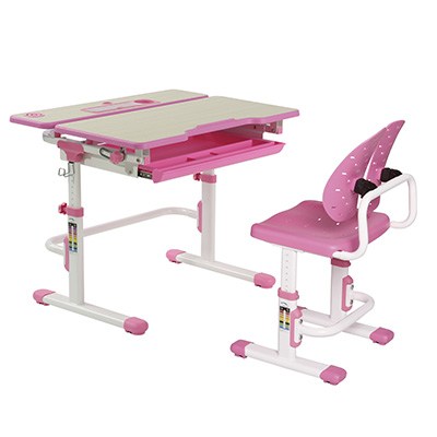 The Castello series is updated version of the C401&C402. this desk & chair suit has an embedded pencil box and a pulled-out storage drawer helping organize books and stationery to reduce clutter. Tiltable desktop provides better angle for writing, reading and drawing. The chair design is more important change and the winged-back reduces pressure on the spine and makes you more comfortable. Height adjustment design lets the desk grow with your child for health
