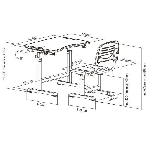 For a healthy growing of your child a correct posture while sitting is important – after all it is in a grow period. B202 is designed to provides a more friendly and comfortable learning environment. The desk and chair can be effortlessly adjusted in height - and enable an optimal adaptation to the current height. The desktop can be tilted up to 40° freely for writing, reading and drawing. The compartmented drawer underneath desktop offers lots of space for books and stationery. 1” anti-pinch safety stoppers and locking mechanism ensure little hands are not pinching when the tablet top is tilt down.