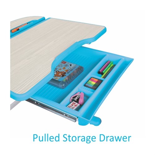 This kid’s desk is ergonomically designed for comfortable sitting and proper body positioning which is important in maintaining good health even from a young age. 450-760mm adjustable height is suitable for kids to grow in different stages of the request. 0°~60° satisfies various usage conditions such as reading, writing, drawing, etc. Pulled-out storage drawer with comparted design for helping organize books and stationery to reduce clutter.