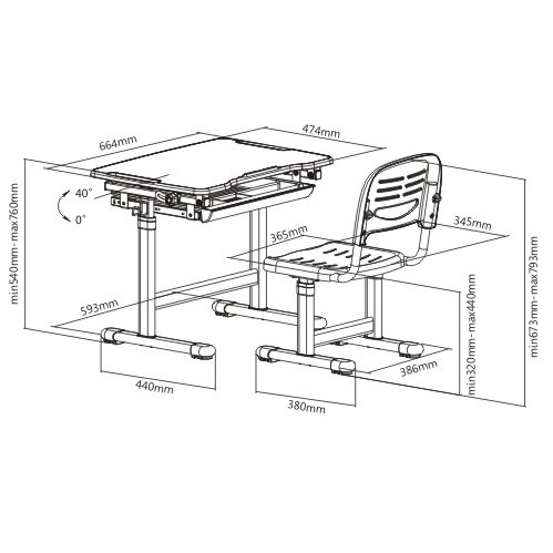 For a healthy growing of your child a correct posture while sitting is important – after all it is in a grow period. B201 is designed to provides a more friendly and comfortable learning environment. The desk and chair can be effortlessly adjusted in height - and enable an optimal adaptation to the current height. The desktop can be tilted up to 40° freely for writing, reading and drawing. The compartmented drawer underneath desktop offers lots of space for books and stationery. 1" desk tilt stoppers prevent hands from being pinched.