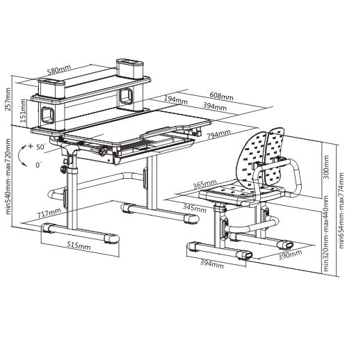Castello Series Height Adjustable Kids Desk and Split-Backrest Chair Set