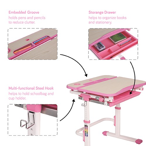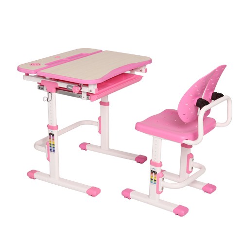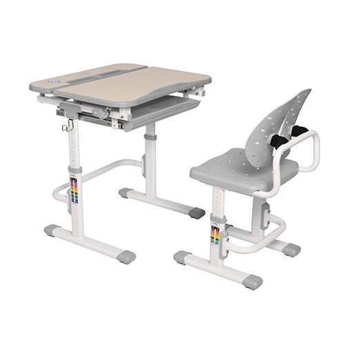 As one of Scholar Series, this desk and chair set provides pulled drawer to meet the larger storage demand. Tiltable desktop with 0° to 45° angle satisfies the need of writing, reading and drawing. Height adjustment design enables favorable seating posture for different age stages. Winged backrest eases the pressure of lumbar spine and provides comfortable seating experience.
