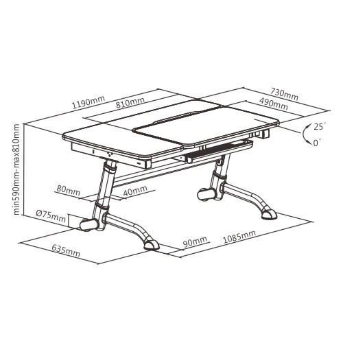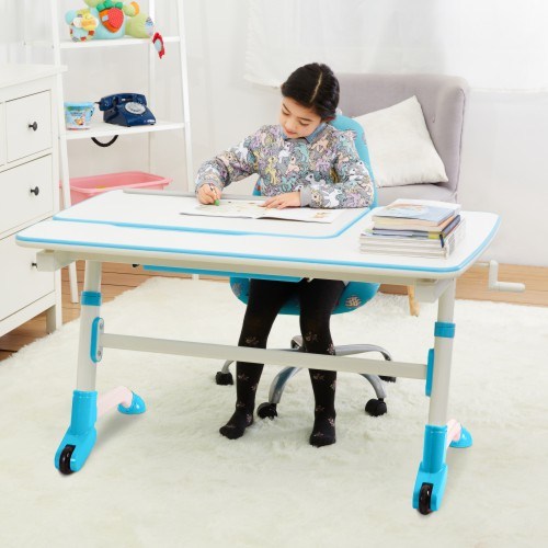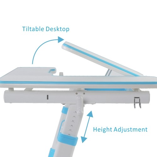 This ergonomic designed desk motivates the little ones for studying and learning. The desktop can be continuously tilted at an optimal angle up to 25 degrees for writing, reading and drawing, to protect the child's spine, shoulder and neck and vision. The desk features a spacious lower compartment drawer under the desktop for storing books, toys, art supplies and more — say goodbye to clutter. All corners & edges are rounded design to avoid child collision.