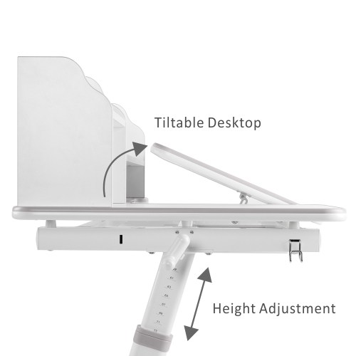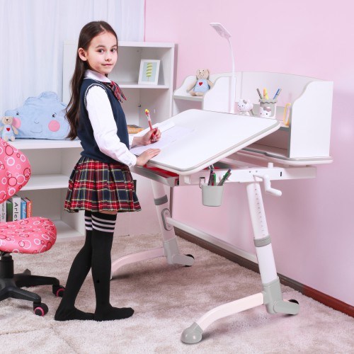 This ergonomic designed desk motivates the little ones for studying and learning. The desktop can be continuously tilted at an optimal angle up to 25 degrees for writing, reading and drawing, to protect the child's spine, shoulder and neck and vision. The desk features a spacious lower compartment drawer under the desktop for storing books, toys, art supplies and more — say goodbye to clutter. All corners & edges are rounded design to avoid child collision.