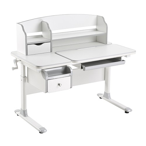 This premium desk is ideal for your child’s rooms, study areas and activity rooms. You no longer need to buy a small desk and have to buy another one in two years. Just increased the height of this desk with the easy-to-use crank to suit your growing child’s dimensions. Tilting desktop surface can be adjusted to various angles for different activities such as reading, writing and play. Comes with ample room of the draw under the desktop for books, paper and school supplies, this desk makes full use of vertical space to add the extra storage area. Multi-function hook on the side holds a school bag. Adjustable feet levelers ensure steady installation on uneven surfaces.