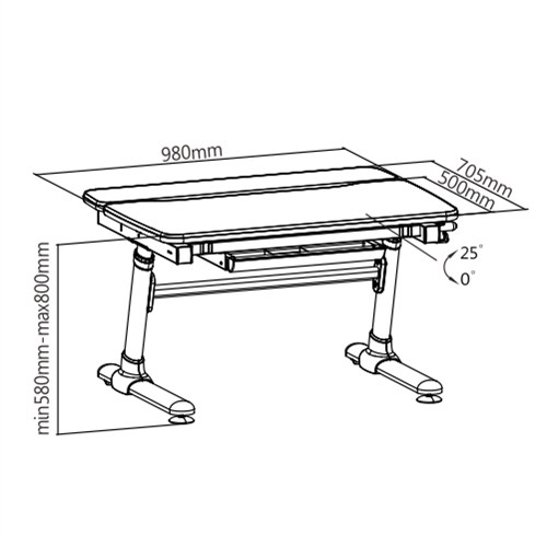 Height Adjustable Children Desk (980x705mm/38.6"x27.8", Front Up)