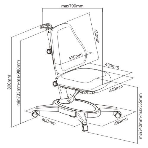 Children’s ergonomic chair, growth as they grow. Our MC203 has been designed to provide children the most comfortable seated posture. It is recommended to adjust the study position often. Ergonomic soft seat & back reduce back strain while correcting posture. Gravity self-locking castors provide a firm foundation for study and work. Comes with a portable handle. Recommended for kids' living rooms, study areas, and playrooms.