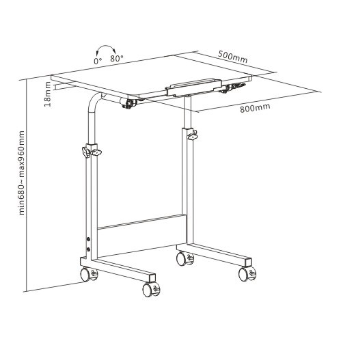 Height and Width Adjustable Mobile Computer Table (500x800mm/19.7"x31.5")