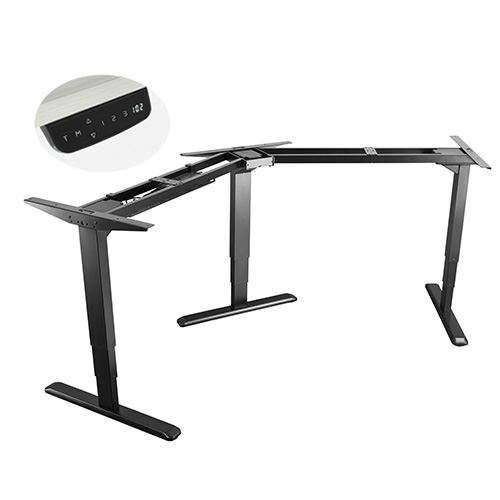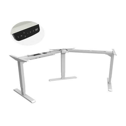 Compared with two legs frame solutions more working space and load-bearing can be provided by three legs frame solution. M02-33RC is a minimalistic option and the best corner sit-stand desk frame if you want something without frills or high costs, perfect for offices, schools, home and most working environments. Thanks to the digital LED memory controller, adjustments can be made with one touch. 3 programmable memory presets save your desired height, sit/stand time reminder for regular movement. Triple-motor offer better stabilization, higher load-bearing capability and low noise while running so that you can enjoy your working experience. As a height adjustable standing desk frame, M02-33RC is easy to link, and is a perfect match for the new requirements of ever-changing office landscapes.